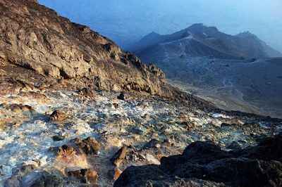 Geologically recent eruptions originated from a northwestern-south southeasterly fissure system that cut across the high-volume and high-volume lava flows from Kopeng and Kajor craters on the northern and southern flanks, respectively.